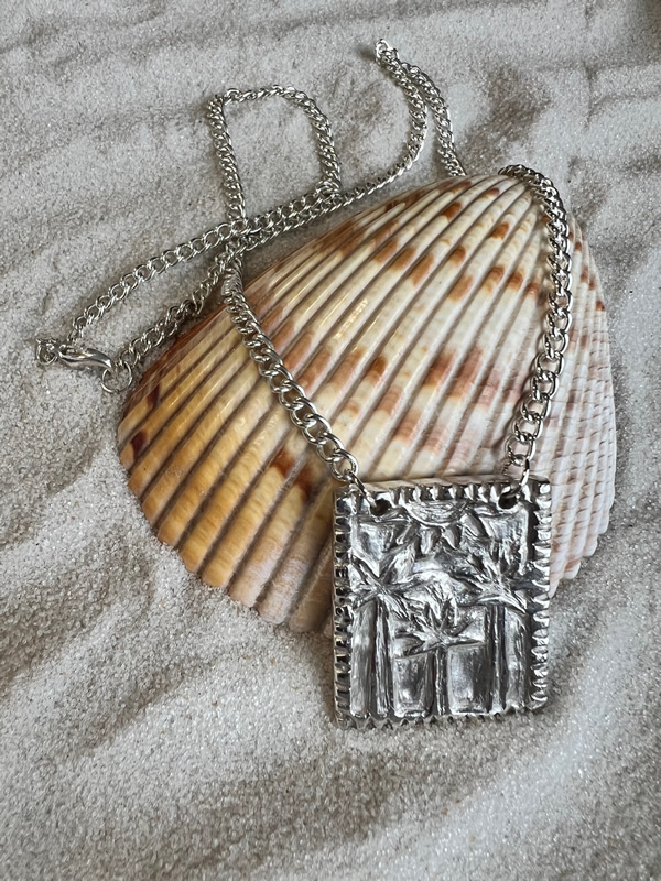 Similar to Polymer Clay, PMC gave me a sculpting medium to work within that was familiar to me. PMC allowed me to shape, sculpt, mold, and carve unique designs that would eventually become pure silver jewelry. Some of my pieces have embellishments of gemstones, CZ, or 24K Gold Gilding. Other elements I also work within are Brass, Beading, Glass, Leather, Sterling Silver Stamping, and Hammered Bracelets.All of my pieces are handcrafted by me in my home workshop. Some of my passions such as gardening, the beach, and butterflies reveal themselves in my pieces. I take great joy and personal pleasure in creating unique and intriguing designs in jewelry.